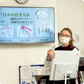 企業・介護施設・地域で講座を開催し、足のトラブル予防や正しい爪のケアをお伝えします。