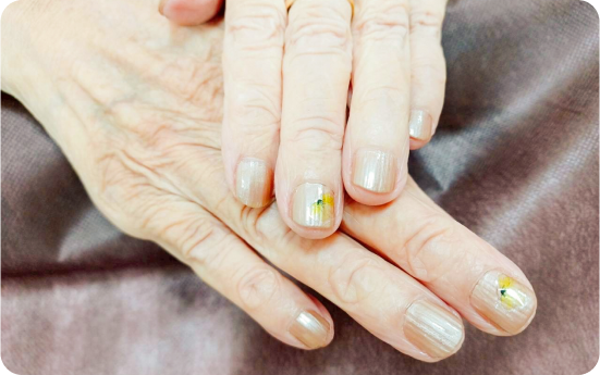 爪ケア・爪磨きマニキュア・ジェルネイル巻き爪ケア・巻爪矯正肥厚爪などご自身や施設スタッフ、ご家族が爪のお手入れができない方への施術など、カウンセリングや打ち合わせをしたの後施術を行います。爪は道具を使わずに目で見て実感できる唯一の美容です。