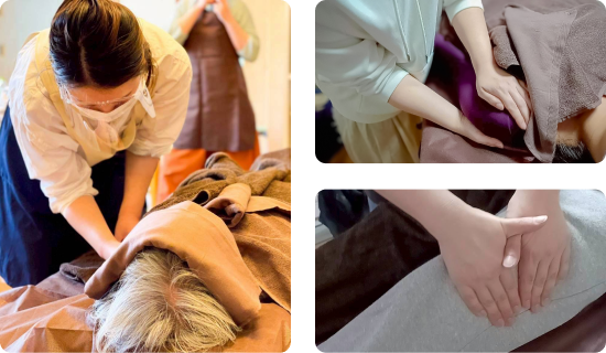 ボディ・フェイシャル・ハンド・フット赤ちゃんから高齢者まで施術を受けて頂ける心地よいソフトなタッチで行うエステとなります。アロマやオイルを使うエステや服を着たままのエステ。その方にあった施術を行います。